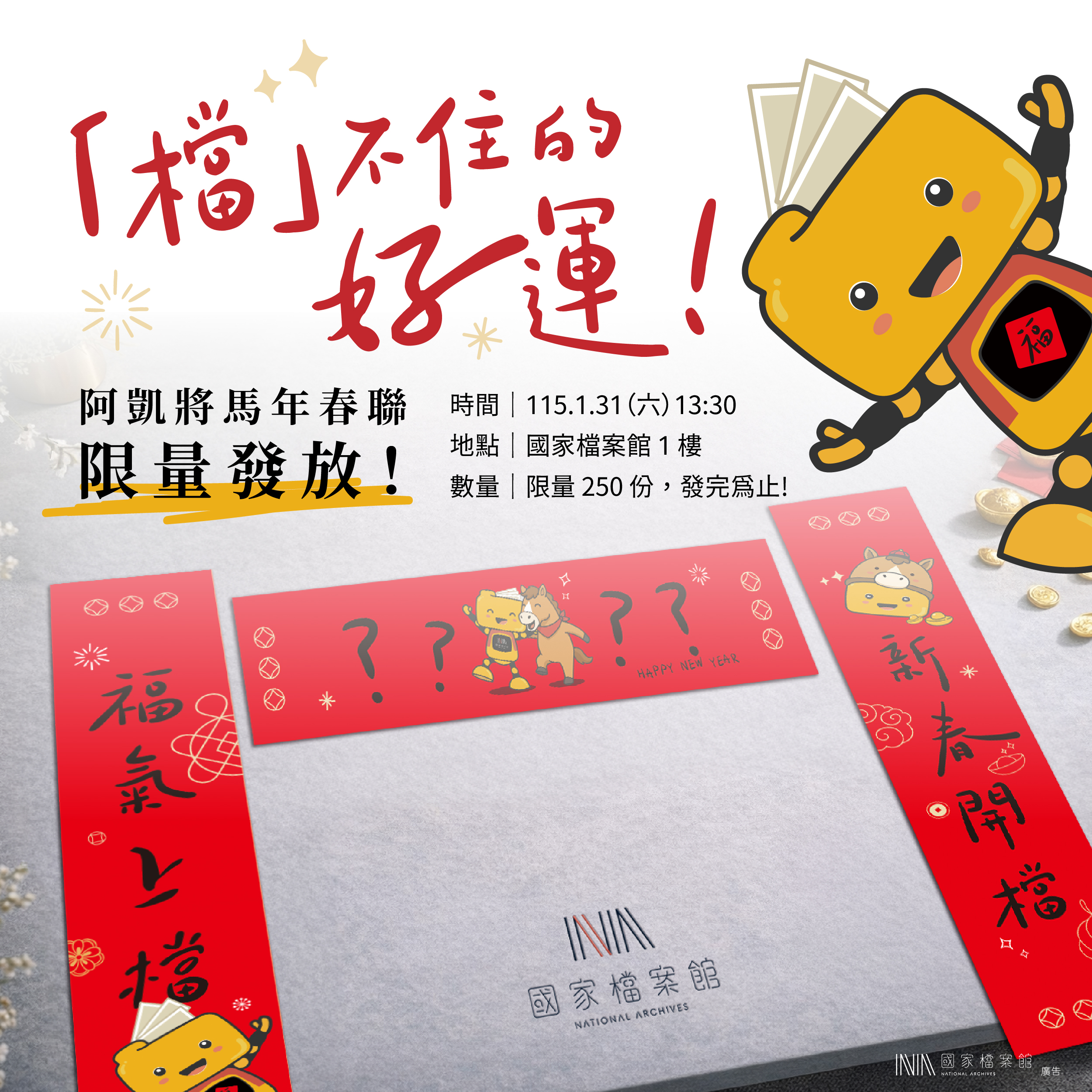 『檔』不住的好運!檔案館馬年春聯發放活動- 2026/01/31 ~ 2026/01/31