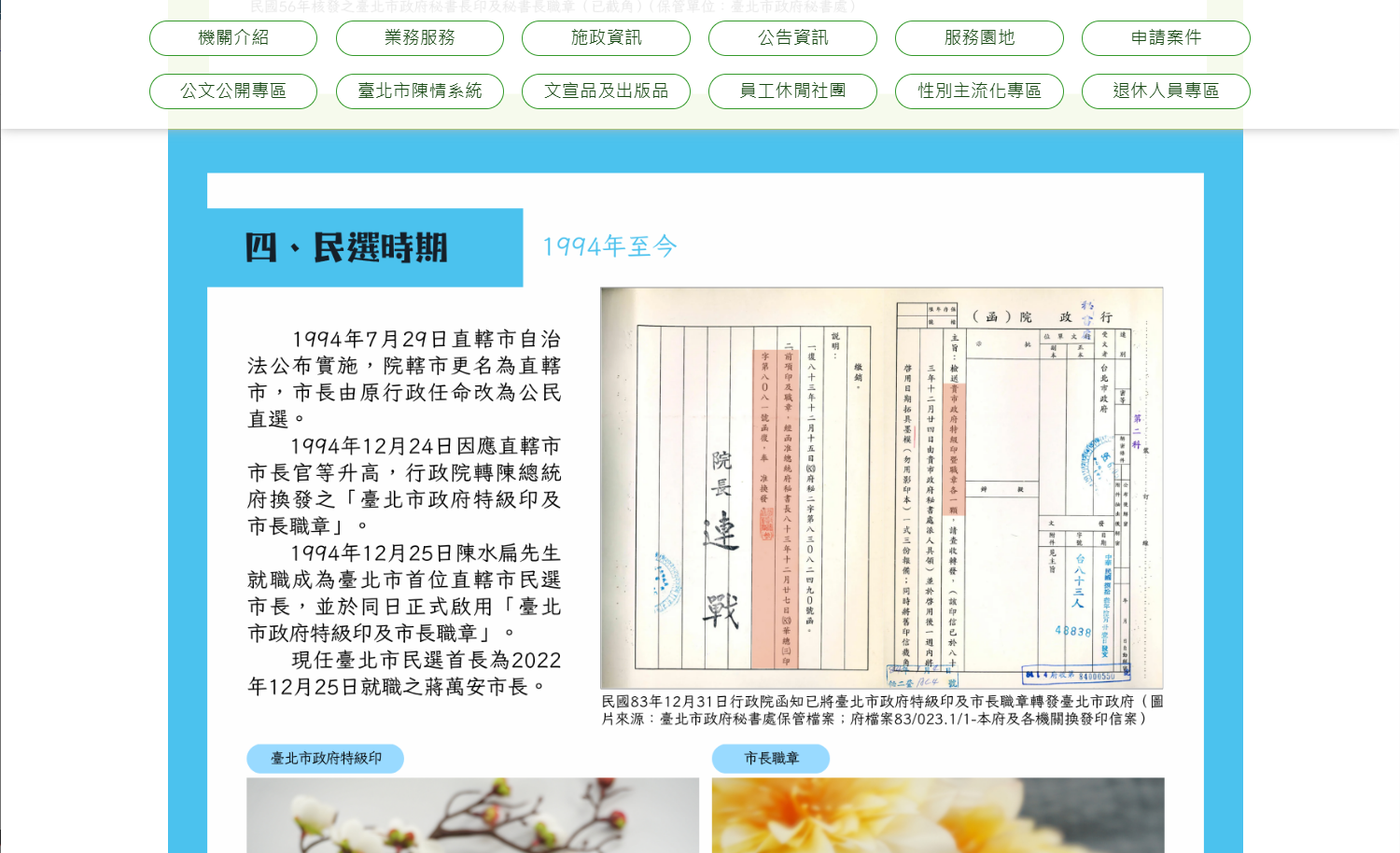 檔案應用線上展「臺北市政府機關與印信變遷歷史足跡」
